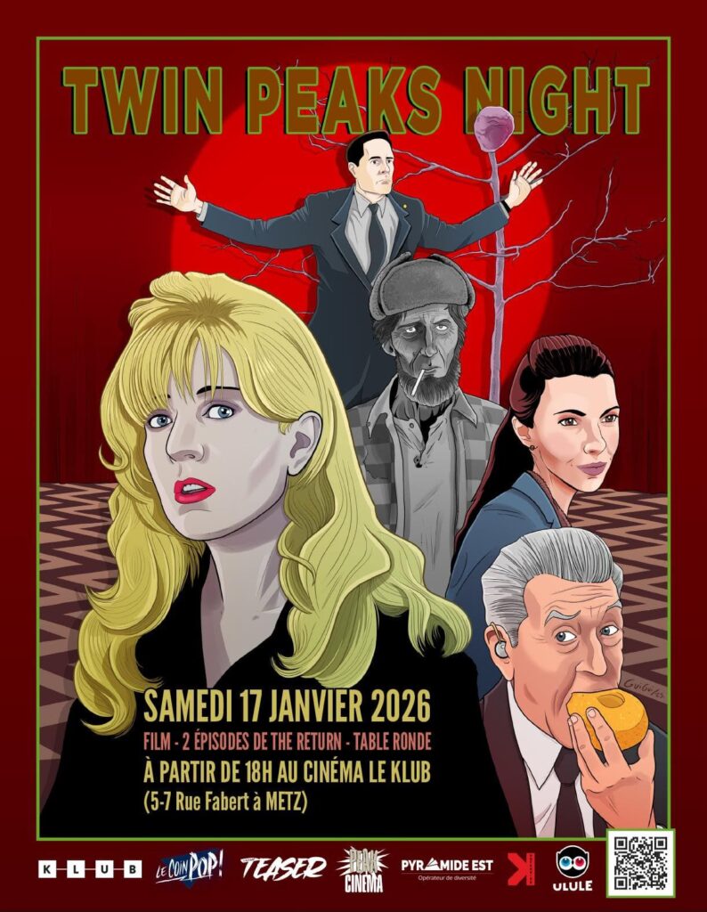 Le Samedi 17 Janvier 2026, j’étais invitée à venir exposer mes œuvres inspirées par Twin Peaks en compagnie d’autres artistes au cinéma LE KLUB à Metz, à l’occasion de la TWIN PEAKS NIGHT, une soirée en hommage à David Lynch et exclusivement destinée aux amoureux de Twin Peaks. Retour en images… et en musique !